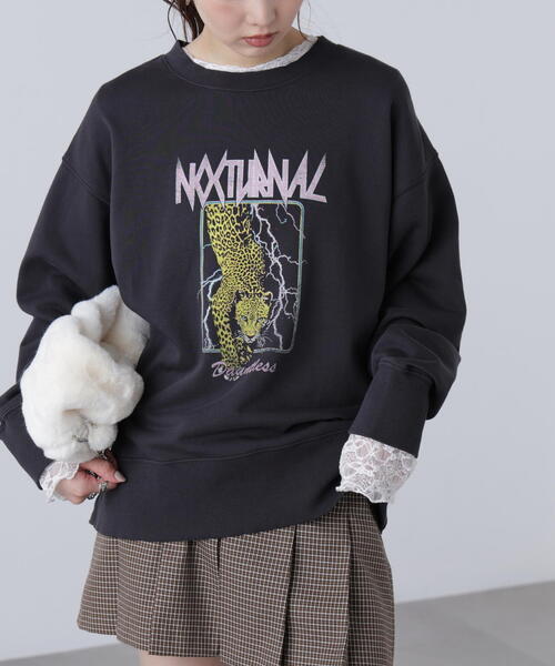 ビンテージライクな雰囲気が魅力のクルーネックスウェット。古着ライクなロックテイスト溢れるグラフィックをデザインし、80'sのバンドTシャツのようなアクセントをプラスしています。程よくルーズなオーバーサイズのシルエットで、トレンド感とリラックス感を両立。ボディはソフトタッチの中肉厚裏毛素材で、優しくライトな着心地です。イレヘムギャザーミニスカート(店舗商品番号1315220085)と合わせれば、甘辛ミックスなスタイルに。ワイドデニムで抜け感を出したラフな着こなしもおすすめ。ワンピースにレイヤードするとカジュアルダウンも楽しめます。※モデルの着用画像の場合、光の当たり具合により、実際の色味と異なって見えることがございます。色味は、商品単体の画像をご参照ください。商品特性■透け感:なし■生地の厚さ:普通■裏地:なし■伸縮性:あり■光沢:なし■シルエット:ビッグ---------------------------------------------------◆商品のお気に入り登録◆お気に入りアイテムの値下げ・再入荷・在庫1点などの通知を受け取ることができます。◆ブランドのお気に入り登録◆新商品や再入荷、セール、クーポン配布などお得な情報を受け取ることができます。---------------------------------------------------