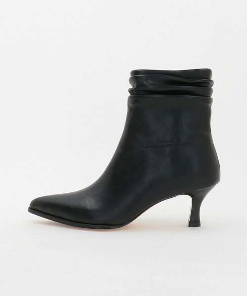 ■WEB限定展開商品■ <MAISON MAVERICK PRESENTS>フェミニンさとモダンさを持ち合わせるアンクルブーツ ■デザイン レザーライク素材を使用した、履き口にギャザーを寄せたようなデザインのショート丈ブーツ。 ミニマルな印象ながらサイドにはさりげなくブランドのロゴを刻印。 ポインテッドトゥに低めの華奢なヒールが女性らしさを演出します。 ショート丈やクロップド丈のパンツと合わせたり、フレアスカートにシャープさをプラスするスタイルもおすすめ。 ワイドパンツからトゥを覗かせるコーデもバランスよく、さまざまな装いにマッチする汎用性の高い一足です。 ■素材 アッパー:合成皮革 <MAISON MAVERICK PRESENTS(メゾン マヴェリック プレゼンツ)> 長年アパレル業界に携わってきた丸山祐貴氏が娘のHINANO氏と共に2019AWシーズンにスタートさせたジャパンブランド。 ブランド名の“MAVERICK”は英語で(何かに)属さない、一匹オオカミという意味で自由なスタンスを象徴したネーミングとなっています。 【注意事項】 ※商品に「取り扱い上の注意書き」、「洗濯表示」がございます場合は、使用前に必ずご確認ください。 ※商品画像は、光の当たり具合やパソコンなどの閲覧環境により、実際の色味と異なって見える場合がございます。あらかじめご了承ください。 ※商品の色味の目安は、商品単体の画像をご参照ください。 ※シューズの重量は、シューズ本体のみ両足の重量となります。箱や付属品は計測に含まれません。 ※商品に不良が無い場合、包装紙および箱の破損がございましても発送いたします。あらかじめご了承ください。 お問い合わせの際は、ユナイテッドアローズ カスタマーサービスデスクまで下記の品名/品番をお申し付け下さい。 品名:by MMP SCRUNCH/L ANK BT 品番:18315000018