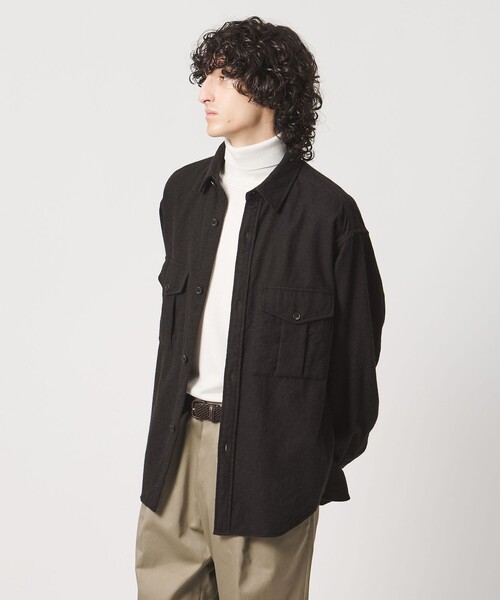 奥行きのある表情と豊かな質感で、深みのある印象に仕上げた2ポケットシャツ ■デザイン ややゆったりとしたシルエットがリラックス感のある着こなしを楽しめる羽織シャツ。 胸元には立体感のあるプリーツポケットがアクセントになります。 袖口・裾・襟から前身頃にかけて施されたステッチでほどよくカジュアルな印象をプラスします。 ソリッドなDK.BROWNと、ストライプのNAVYの2色展開。 ■素材 タテ糸に紡毛、ヨコ糸に梳毛を使用して織り上げたウール素材を使用。 生地段階で丁寧に縮絨加工を施し、縫製後に洗いをかけることで、独特のふわっとした風合いと表面の自然なうねりを生み出しています。 ■コーディネート ハイネックのインナーと組み合わせたレイヤ―ドスタイルがおすすめ。 同素材のベイカーパンツ(対象品番:11141000010)とのセットアップが可能です。 ============================ 裏地 :なし 透け感:なし 伸縮 :なし 光沢感:なし ============================ <District (ディストリクト)> ファッションの本質を支えるのは'創造性'と完成度の高いものづくりを目指す'職人精神'。 クリエイティヴィティとクラフトマンシップがテーマのDistrict UNITED ARROWSはファッションの本質的な価値と魅力'を伝え続けます。 【注意事項】 ※商品に「取り扱い上の注意書き」、「洗濯表示」がございます場合は、使用前に必ずご確認ください。 ※商品画像は、光の当たり具合やパソコンなどの閲覧環境により、実際の色味と異なって見える場合がございます。あらかじめご了承ください。 ※商品の色味の目安は、商品単体の画像をご参照ください。 店舗へお問い合わせの際は、全国のUNITED ARROWS各店舗まで下記の品名/品番をお申し付けください。 品名:D SRNK/SRG 2PC SHT 品番:11151000003