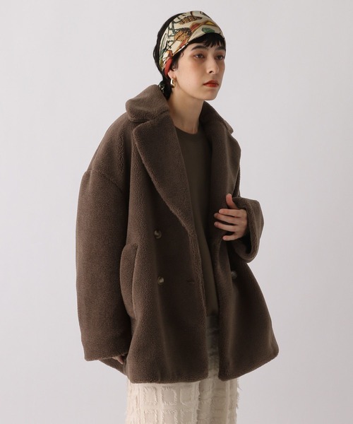 存在感のあるデザインで冬のワードローブにベーシックなスタイリングに羽織るだけでこなれ感が増すボアコートーーー【素材】テディベアのような膨らみのあるボア素材を使用。柔らかい肌当たりで着心地もよく、快適にご着用いただけます。【デザイン】シーズンムードを高めてくれる温かみのある素材が魅力のボアコート。ピーコートのようなダブルブレストで素材感を活かしたシンプルなデザインに仕上げました。暖かさもあり、ゆったりとしたサイジングで着心地のいい一着です。ーーー【スタイリング】インナーやボトムスがシンプルで様になるアイテムです。幅広いボトムスやトップスと相性抜群で、様々なテイストと合わせていただけます。
