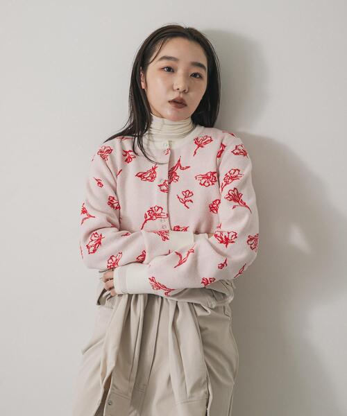 【マンネリ打破。線画モチーフのデザインニット】】 ・もちもち素材で暖かく、コートのインナーとしても快適 ・線画のフラワーモチーフが、大人カジュアルなスタイルを演出 ・フロントのボタンデザインが、さりげないアクセントに もちもちとした暖かな素材を使用したカーディガン。線画タッチのフラワーモチーフが、甘くなりすぎず大人っぽく着こなせるデザインです。コンパクトな丈感なので、ハイウエストのボトムスともバランス良く決まります。ボタンを閉めてトップスとして着たり、コートの中に着込んだりと、着回し力抜群の一枚です。 【2025 Autumn/Winter】【25AW】 総重量 : 約330g ※商品画像は、光の当たり具合やパソコンなどの閲覧環境により、実際の色味と異なって見える場合がございます。予めご了承ください。 ※商品の色味の目安は、商品単体の画像をご参照ください。 ▼お気に入り登録のおすすめ▼ お気に入り登録された商品は、マイページにて現在の価格情報や在庫状況の確認が可能です。 お買い物リストの管理にぜひご利用ください。 素材感 透け感 : なし 伸縮性 : あり 裏地 : なし 光沢 : なし ポケット : なし One