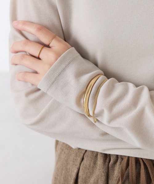クイックに手元のレイヤードが楽しめるデザインバングル【POINT】・メタルバングルとチェーンを組み合わせたレイヤードバングル。・ブレスレットを重ね付けしているようなデザインで、手元に華やかさを演出してくれます◎・カジュアルに普段使いはもちろん、オケージョンシーンやパーティシーンにもおすすめです。【素材】真鍮、合金【サイズ】内径:約12.5cm開き:2.7cm【気になる商品は「お気に入り」登録を】 ハートマークをクリックし、お好きなカラーを選んでお気に入りに登録すると入荷情報や残り1点の通知、完売カラーの再入荷、セール情報などを受け取ることができます。※撮影場所やお使いのモニター環境により若干お色味が異なる場合がございます。特にロケの撮影では明るく見える傾向にございます。詳細撮影画像で色味をお確かめくださいます様お願いいたします。※サンプルで撮影をしております。若干の仕様が変更になる場合がございますので予めご了承の上ご注文くださいますようお願いいたします。※サンプルでの採寸のためあくまで目安となります。予めご了承ください。≪返品・交換について≫・着用後、洗濯後の返品・交換は致しかねます。・商品到着後、着用前に商品状態のご確認をお願い致します。