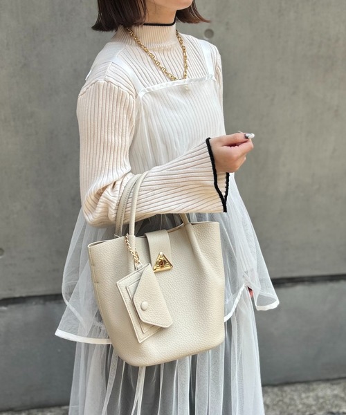 【ORiental TRaffic】三角形のバックルモチーフや立体的なストラップデザインが高見えするハンドバッグは、シボ感のある素材を使用し上品な印象に。コンパクトなシルエットながらマチのある底回りで見た目以上に収納力があるのも嬉しい。取り外し可能なショルダーやポーチ付きで気分によってスタイルを変えて楽しめるのもポイント。★《お気に入り登録》でお得な情報をGET★・「商品のお気に入り登録」で再入荷通知やラスト1の通知、セールやクーポンの通知も受け取ることができます!→ハートマークをクリック・「ブランドのお気に入り登録」で新商品や再入荷など、お得な情報を受け取ることができます!-------------------------------------------------------------------------------------<価格改定のお知らせ>2026年2月16日(月)より価格見直しのため価格改定をさせて頂きます。ご了承下さいますよう、お願い申し上げます。-------------------------------------------------------------------------------------