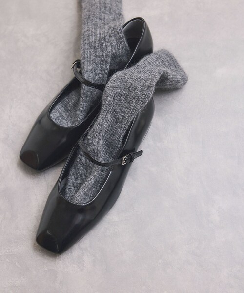 ◇26SS◇ ADAM ET ROPE' FEMME 【Material】 程よく光沢のあるガラスレザー調の合成皮革を使用。 【Design】 クラシカルな印象のメリージェーンを可愛らしくなりすぎないようモダンに仕上げたアイテム。 スクエアトゥの先端をカットすることでモードな印象に仕上げ、美しいフォルムにとことんこだわったローヒールパンプス。 さりげなくスタイルアップしつつ普段使いしやすいヒールの高さも嬉しいポイント。 バックルの下にゴムを内蔵しており、着脱簡単な仕様に。 金具はシルバーカラー。 【Color】 ブラック、ダークブラウンの2色展開。 【Styling point】 クラシックなメリージェーンがベースになっておりトレンドに左右されず、シーンを選ばずスタイリングにプラスワンしてくれるアイテム。 シアーなソックスをレイヤードして着こなしのアクセントにしていただくのもおすすめ。 ※一部の箱に配送の際についてしまった、へこみなどがある場合がございますが、商品に問題はございません。