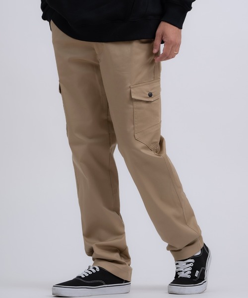 高いストレッチ性を持ったツイル素材を使用した、タウンユースに最適なワイドカーゴパンツ。 ●適度なハリとコシのある快適な穿き心地を実現させるチノツイル生地に、ポリウレタンを混紡することで高いストレッチ性をプラス ●脚のラインを拾わないゆとりのある太めのシルエットがトレンド感のある着こなしを演出 ●イージーパンツ仕様のゴムとボタンフライの併用で、着脱が簡単 ●着回し力の高い定番のブラックとトレンドのカーキの二色展開 デイリーユースの新定番!ワイドストレートなツイルカーゴパンツです。 ビッグシルエットのトップスやスウェットと合わせてAラインシルエットを作ったり、 あえてロールアップして足元をすっきり見せるのもおすすめ。 メンズはもちろん、ゆったり穿きたいレディースにもおすすめのユニセックスアイテムです。