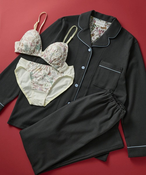 ウンナナクールはワコールから生まれた下着屋さん 綿100%の開襟シャツの長袖パジャマ。 ハリ感のある綿100%のフライス素材で、背当てにはリバティプリントの生地をあしらいました。 リラックスできる着心地にこだわったデザインは、おうちでくつろぐ時やラウンジウェアとしてもおすすめのアイテムです。 ボトムには何かとうれしいポケット付き。 【une nana cool Upcycle PAJAMASとは】 アウターアイテムに使用されるテキスタイル(生地)の中から、少量ずつ余ったものを、ウンナナクールがパジャマづくりにアップサイクルしています。 本来はアウター向けに生産されたテキスタイルの中から、パジャマとしても心地よく着られる肌触りや風合いのものを厳選して使用しています。 生地に限りがあるため、各カラーともに数量限定でのご用意となりますが、少量ずつ異なるテキスタイルを活用することで、バリエーションが豊富なパジャマがそろいました。 ------------------------------------------------------ LIBERTY FABRICS 1875年創業の英国リバティが手掛けるテキスタイルブランド「リバティ・ファブリックス」。 繊細で流動的な線で描かれ、独特の色彩が特徴のプリント生地が世界中で愛されています。 ------------------------------------------------------ 品番: LP6471 ウエストゴム取替口あり 洗濯機可(ネット使用) ※お洗濯は、必ず「取扱い表示」にしたがってください。 【サイズ詳細】 M: バスト104.0cm 着丈65.0cm ズボン脇丈95.0cm ウエスト55.0cm L: バスト112.0cm 着丈66.0cm ズボン脇丈96.0cm ウエスト59.0cm ※出来上がり寸法を表示しております。 ※サイズ詳細の寸法には多少の差異がございます。