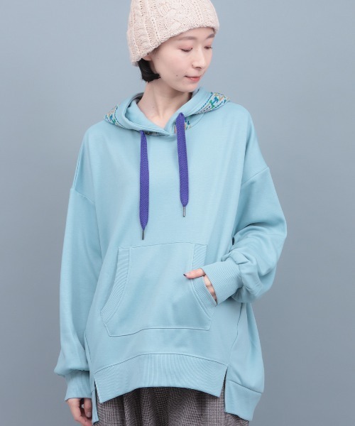 ふわっふわのシャギーボアがあたたかいプルパーカー ■デザイン フード周りのネイティブアメリカンの織るラグの柄刺繍がエスニックムードが漂う1枚。 裏はふわふわとしたシャギーボアで軽い着心地とあたたかさが魅力です☆ 大きなマフポケットの内側もボアになっているので、手を入れるだけでもぽっかぽか♪ フロントの丈は短めでバックが長い、ぽってりとしたコクーンシルエットで体型カバーが叶います。 サイドにスリットを入れることで、ワイドパンツやスカートと合わせても動きやすい。 ■サイズ感 レディースフリーサイズ オーバーシルエットでルーズに着こなせます。 お尻が隠れる丈で、ヒップラインをさりげなくカバー。 ■素材感 柔らかなスウェット生地。 裏は滑らかなシャギーボアを使用しているので、着心地が良く暖かさも抜群。 ■スタイリング デニムパンツやカーゴパンツなどの定番ボトムスと合わせてカジュアルに。 華やかな柄のニットパンツやスカートと合わせて、エスニックな着こなしもおすすめ。 ■カラー ブラック/アイボリー/ライトブルー ■お手入れ洗濯可 --------------------------------- 透け感:透けない 伸縮性:あり 裏地 :なし 光沢 :なし 生地の厚さ:普通 ポケット:あり --------------------------------- 【TITICACAのお買いものをお楽しみいただくために!】 ▼商品のお気に入り登録 完売カラーの再入荷通知や、ラスト1点の通知、セールの通知も受け取ることができます。 ▼ブランドのお気に入り登録 新商品や再入荷など、いち早くブランドのお得な情報を受けることができます!