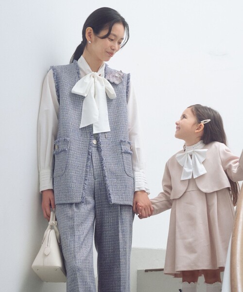 華やかな着こなしを演出するツイードライクジレ■デザインコーディネートにほどよいアクセントを加えてくれるツイードライクな素材のジレ。フロントのポケットやネック周りのボリューム感のあるフリンジがポイントです。ややゆとりのあるサイズ感で、かっちりしすぎずこなれた雰囲気に◎ライトウェイトな素材なので重くなりすぎず、軽やかな印象で着用いただけます。合わせるアイテム次第でお仕事やセレモニー、デイリーまで幅広いシーンに活躍する一着です。■素材ミックスカラーがポイントのツイードライクな素材。何種類もの糸と色を使用していることで奥行きのある生地に仕上がっています。■コーディネートジレを主役に、インナーやボトムはシンプルにまとめるのが◎少し透け感のあるニットを合わせれば、より洗練された着こなしに。同素材のパンツとのセットアップスタイルもおすすめです。■サイズ拡大アイテムfind my size [SHORT-36サイズ] あり・身長148cm~155cmの小柄で 身幅などのサイズ感は36サイズが良いという方に向けて。・SHORT-36サイズは一部店舗・WEBストアでの限定サイズとなります。・同素材のパンツのご用意もございます。対象品番:35141000013#フォーマル,#オケージョン,#セレモニー,#セレモニーアイテム,#セレモニー服,#卒業式,#入学式,#卒園式,#入園式,#式典,#母,#春服,#2026ceremony_2,#2026ceremony_3,#2026ceremony_12,#2026ceremony_14============================裏地:あり透け感:なし伸縮:なしケア方法:ドライクリーニング============================【注意事項】※<SHORT-36 サイズ>は、身長を基準としておりますがあくまでも目安となりますので、サイズ感は記載の採寸表をご確認くださいませ。※画像の商品はサンプルです。※商品を使用前に、タグ等に記載されている「取り扱い上の注意書き」、「洗濯表示」を必ずご確認ください。※商品画像は、光の当たり具合やパソコンなどの閲覧環境により、実際の色味と異なって見える場合がございます。あらかじめご了承ください。※商品の色味の目安は、商品単体の画像をご参照ください。店舗へお問い合わせの際は、全国のgreen label relaxing各店舗まで下記の品名/品番をお申し付けください。品名:◆◆CB ライトTWEED ジレ_A 品番:35221000012