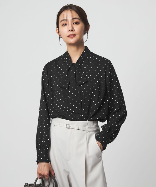 とろみ素材が上品でこなれた印象のボウタイブラウス■デザイン華やかなリボンボウタイが目を惹くブラウス。しなやかなとろみのある素材が着こなしにこなれ感をプラスします。一枚着としてはもちろん、ジャケットのインナーとしても映えるデザインです。ボウタイの下部分にはホックが付いており、着脱がしやすいのもさりげなく嬉しいポイント。デイリー・お仕事、セレモニーシーンまで幅広く活躍する一着です。■素材とろみと落ち感があり、上品な印象の素材。■コーディネートジャケットやジレと合わせてきちんと感をプラス。ワイドパンツと合わせた、抜け感のあるスタイルもおすすめです。・その他1カラーはブラックとオフホワイトのドット柄です。#フォーマル,#オケージョン,#セレモニー,#セレモニーアイテム,#セレモニー服,#卒業式,#入学式,#卒園式,#入園式,#式典,#母,#春服,#秋服,#2026ceremony_4,#2026ceremony_6,#2026ceremony_7============================透け感:ホワイト ややあり機能性:防シワ(着用時シワになりにくい)ケア方法:洗濯機洗い可============================【注意事項】※画像の商品はサンプルです。※商品を使用前に、タグ等に記載されている「取り扱い上の注意書き」、「洗濯表示」を必ずご確認ください。※商品画像は、光の当たり具合やパソコンなどの閲覧環境により、実際の色味と異なって見える場合がございます。あらかじめご了承ください。※商品の色味の目安は、商品単体の画像をご参照ください。店舗へお問い合わせの際は、全国のgreen label relaxing各店舗まで下記の品名/品番をお申し付けください。品名:D トロミボウタイ BL 品番:35116000003