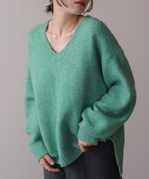 ■POINTやさしい抜け感をまとえる、ヤクライクVネックプルオーバー。ほどよく開いたVネックがデコルテをすっきり見せて、顔まわりにやわらかな明るさをプラスします。前後差のある着丈は、動くたびにふわりと揺れて女性らしいシルエットをつくりながら、気になる腰まわりやお尻をさりげなくカバー。長すぎず短すぎない絶妙なバランスで、パンツにもスカートにも合わせやすく、毎日のコーデに軽やかに寄り添います。30~40代の大人の女性が求める“すっきり見えて、楽に着られて、おしゃれも叶う”をきちんと押さえた一枚です。■FABRICヤク糸のようにチクチクしない、ふんわり軽い肌ざわりが自慢のニット編地を使用。思わず触れたくなる優しさがありながら、発色のきれいさも魅力です。シンプルな色でも、どこか上品に見えるのはこの素材ならでは。軽くてあたたかいので、長い季節で気持ちよく着られます。…………………透け感:なし裏地:なし…………………★商品のお気に入り登録 登録すると、完売しても再入荷時に通知を受け取ることができます。 ほかにもお得な特典があるかもしれません♪ ★ブランドのお気に入り登録 新商品や再入荷などの情報を受け取ることができますので、是非ご登録ください♪