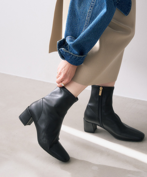 程よいボリュームのチャンキーヒールとフィット感のある細身の筒周りが、合わせやすさと履きやすさを両立。パンツからさりげなくのぞかせてラフに合わせてもワンピースなどのきれいめスタイルにも、幅広いコーディネートに取り入れやすく、旬のバランスを楽しんで頂けます。また、アウトソールに防滑ソールを採用し、雨や雪の道でも滑りにくい仕様に。縫い目の下側数センチに防水テープ、底面に防水シートを使用している為、完全防水ではありませんが軽い雨の日でも安心して履いていただける万能シューズです。アーチクッション搭載で足当たりを柔らかくサポートしてくれるのも嬉しいポイント。**********************【スタッフ着用コメント】《スタッフT》普段サイズ:23.5/着用サイズ:Mサイズ感: Mサイズでぴったり。履き心地: 窮屈感はありませんが筒周りは割と細めです。柔らかいのでしっかりフィットしてくれて擦れる感じはありません。普通の厚さの靴下着用でジャストサイズでした。***********************こちらの商品は品番:25173820655430と同型です。*防水仕様の商品ではありませんのでご了承ください。*デザイン上、小雨程度までのご使用をおすすめ致します。*サイズによりヒールの高さが多少前後することが御座います。予めご了承ください。*照明の関係により、実際よりも色味が違って見える場合があります。またパソコン・スマートフォンなどの環境により、若干製品と画像のカラーが異なる場合もございます。*商品の色味は、商品アップ画像をご参照ください。