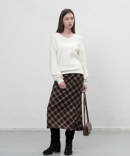 [DESIGNER COMMENT]ヴィンテージなチェック柄が魅力のロングスカート。カジュアルにもデイリーにもぴったりなアイテム。柔らかい素材のポリエステルレーヨンで着心地抜群。身体のラインを拾いすぎない程良いセミフレアシルエットもポイント。[DETAIL INFO]伸縮性:なし裏地:あり透け感:なし厚さ:普通[WASHING TIP]ドライクリーニング※洗濯の際は、製品のケアラベルに従ってください。