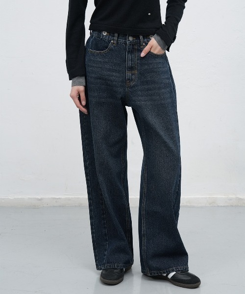 [DESIGNER COMMENT]ウエストの調整の効くデザインディテールがポイントのデニムパンツ。縦ラインでスラッと魅せダボッと感のあるワイドなシルエットがオシャレ。後ろのベルトループのカラーディテールがさりげなくアクセントに。ロングな着丈がスタイルアップを叶える。[DETAIL INFO]伸縮性:なし裏地:なし透け感:なし厚さ:普通[WASHING TIP]ドライクリーニング※洗濯の際は、製品のケアラベルに従ってください。