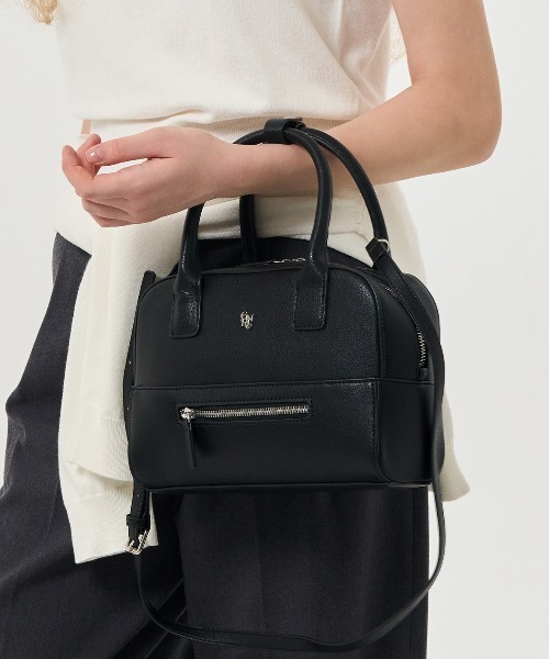 [DESIGNER COMMENT]コンパクトな見た目ながら荷物がたくさん入る抜群の収納力。ブランドロゴリプレート付きもポイント!ファスナーでオープンクロージング◎上品なフェイクレザーで幅広いシーンに活躍できるアイテム。ハンドバッグとしてお持ちいただくことはもちろん付属のショルダー紐で、斜め掛けもできる2WAY使用。[WASHING TIP]専用クリーナーで汚れた部分を軽く拭く