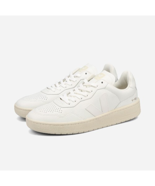 "2005年からスニーカー作りをスタートしたVEJA(ヴェジャ)。 キャンバス素材はフェアトレードで仕入れたオーガニックコットン。 靴底にはアマゾンの熱帯雨林で採れた天然ゴム。 アッパーにはリサイクルペットボトルやリサイクルポリエステルを原料にした素材などを取り入れて生産しています。 V-90は、オールドスクール な90年代のアスレチックファッションに新しいテイストをミックスし、スタイリッシュなデザインと快適な履き心地をバランスよく兼ね備えたユニセックスモデルです。 V-90に使用されているレザーは100%オーガニック認証を受けたウルグアイの農場で生産されたものです。 VEJAの調達している革の中で最も柔らかいレザーです。 ブラジルで鞣された牛革は、従来の牛革よりも少ない染料で染められており、丁寧に繊維をほぐす工程を経ることで、きめ細かさとしなやかさを増します。 Upper: O.T. レザー Insole: 11% アマゾン天然ゴム, 42% サトウキビ 11% リサイクルポリエステル , 12% オーガニックコットン Outsole: 40% アマゾン天然ゴム,10% リサイクルラバー Lining: 100% リサイクルポリエステル Laces: 100% オーガニックコットン 【原産国】 ブラジル"