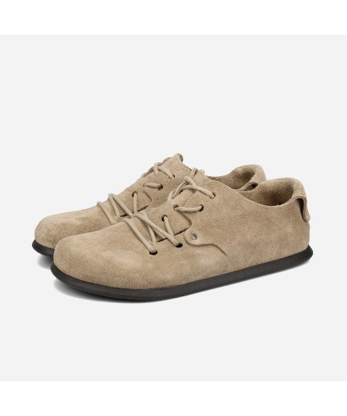 シンプルに洗練された一足。 BIRKENSTOCK Montanaの魅力はユニークなシームレスデザインです。 2枚のアッパー素材は、2つのリベットと工夫を凝らしたレースアップでお洒落にホールドされています。 アッパーには足をもう一枚の肌のように優しく包み込む特に柔らかいベロアレザーを使用しています。 ・足の形状を考慮したフットベッド