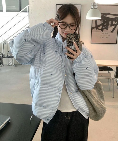 爽やかなブルーストライプに、さりげないリボン柄を散りばめた大人かわいいダウンジャケット。スタンドカラーで首元までしっかり暖かく、冷たい風をブロックしてくれます。軽やかな着心地ながら保温性に優れた中わた仕様で、真冬も快適。腰丈のすっきりとしたシルエットはボトムを選ばず、バランスのとれたスタイリングが楽しめます。フェミニンさを感じるリボン柄と、クリーンなストライプが絶妙にマッチ。デイリー使いはもちろん、通勤やお出かけシーンにも活躍する上品カジュアルな一枚です。 ‥‥‥‥‥‥‥‥‥‥‥‥‥‥‥‥‥ 透け感:無 伸縮性:無 サイズ感:ややゆったり ポケット:両サイドに2か所ずつ ‥‥‥‥‥‥‥‥‥‥‥‥‥‥‥‥‥ ●サンプル品を使用している事もあり、サイズ感など多少異なる場合もございます。 ●パソコンのモニター、撮影の光量などにより画像と実物の色味が異なって見える場合がございます。 ●入荷時期・追加生産により画像・詳細と多少異なる場合がございます。 ■商品によって生地の他繊維の混紡、縫製の多少のほつれなどがある場合がございます。
