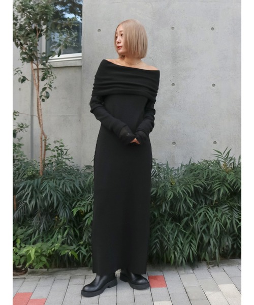 首元を美しく見せるオフショルダーニットワンピース ■デザイン 折り返した襟元はくしゃっとギャザーを寄せたり伸ばしたりと自分で好みにアレンジ可能です。 シンプルながら後ろの裾スリットがアクセントになり、後ろ姿にも女性らしさと抜け感を演出。 ■生地感 柔らかく肌触りのよい合繊糸を使用しています。 ストレッチ性があるので動きやすくデイリーに着やすい着心地です ■サイズ感 アイラインシルエットですっきりとした女性らしい印象のサイズ感です。 ■スタイリング サイドゴアブーツでカジュアルダウンさせる合わせがお勧めです。 フラットシューズやスニーカーでも合わせやすいシンプルワンピです。 ・・・・・・・・・・・・・・・・・・・・・・ 透け感:なし 裏地:なし 伸縮性:あり 光沢感:なし 生地の厚さ:普通 ・・・・・・・・・・・・・・・・・・・・・・ ※商品画像はサンプルのため、色味やサイズ、素材の混率等の仕様に 変更がある場合がございます。予めご了承ください。 ※生地寄り画像を正規の商品の色味に近づけております。 ■商品のお気に入り登録 再入荷通知やラスト1点、お得なプライスダウンの情報も受け取ることができます。 ぜひご登録ください◎