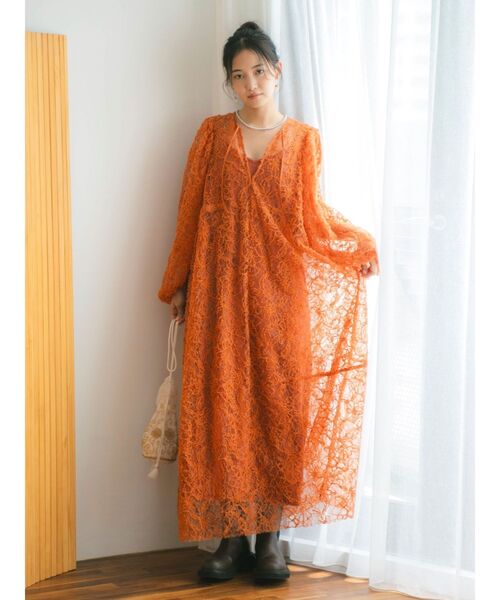 起毛感のあるレースを贅沢に使用したワンピース ■デザイン 甘すぎない柄と透け感がぐっと春らしい印象を与えてくれます。 たっぷりと大き目のボリュームスリーブでシンプルながらしっかり存在感のあるデザインに仕上げています。 キャミペチコートがセットなのでペチ無しでも着回し可能。 高めウエスト位置にあるドローストリングを絞ってメリハリを付けるとスタイルアップ効果も見込めます。 ■生地感 起毛感のある上品で女性らしいレースです。 すっきりとした幾何学柄なので甘くなりすぎず着てもらえます。 ■サイズ感 身体のラインを拾わないシルエットが快適なサイズ感です。 ■スタイリング 1枚で着映えるのはもちろん、キャミペチを着ずにデニムとのレイヤードスタイルもおすすめです。 ・・・・・・・・・・・・・・・・・・・・・・ 透け感:あり 裏地:なし 伸縮性:なし 光沢感:なし 生地の厚さ:普通 ・・・・・・・・・・・・・・・・・・・・・・ ※商品画像はサンプルのため、色味やサイズ、素材の混率等の仕様に 変更がある場合がございます。予めご了承ください。 ※生地寄り画像を正規の商品の色味に近づけております。 ■商品のお気に入り登録 再入荷通知やラスト1点、お得なプライスダウンの情報も受け取ることができます。 ぜひご登録ください◎