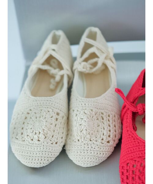 花柄モチーフがヘルシーな手編みでメッシュ編みに仕上げたフラットシューズ ■デザイン ひとつひとつ手編みでメッシュ編みに仕上げたフラットシューズ。 足首に紐を巻いて穿く仕様です。 ■生地感 手編みのメッシュ素材で軽やかで通気性があり、夏らしい爽やかな風合いです。 ■サイズ感 フラットで履きやすく、紐で調節できるため足首にフィットさせて着用可能です。 ■スタイリング スタイリングに映えるレッドと、カラーアイテムに合わせやすいオフホワイトの2色展開で、 ワンピースのスタイリングからデニムとのスタイリングまで幅広く夏っぽく履けるデザインです。 ※商品画像はサンプルのため、色味やサイズ、素材の混率等の仕様に 変更がある場合がございます。予めご了承ください。 ※生地寄り画像を正規の商品の色味に近づけております。 ■商品のお気に入り登録 再入荷通知やラスト1点、お得なプライスダウンの情報も受け取ることができます。 ぜひご登録ください◎