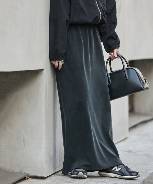 JOURNAL STANDARDご好評につき、フィブリルキュプラジャージーマキシスカートが追加決定!※旧品番25070400342020、25070400342130、25070400342230、25070400342340の追加商品です。※ブラックの追加です。※若干の仕様変更がある場合もございます。※旧品番はすでに店舗に入荷しております。在庫数等は店舗にお問い合わせ下さいませ。キュプラジャージーにフィブリル加工施してヴィンテージサテンのような生地感に仕上げたIラインスカートです。ジャージー生地でのこの加工感は少なく、程よい光沢感と穿きやすさにこだわりました。ウエストゴムで楽な穿き心地、シンプルなデザインで、シーン選ばず着まわせます。透け感なく肌離れもよいのでオールシーズン活躍するおすすめのスカートです。**********************透け感:なし裏地:なし伸縮性:あり光沢感:ややあり生地の厚さ:普通**********************【スタッフ着用コメント】《スタッフO》年齢:30代後半/身長:158cm/体型:普通/普段サイズ:38/着用サイズ:FREEサイズ感:すっきりシルエットですが、ウエスト、ヒップ周り楽に穿けました。私の身長でマキシ丈です。素材感:マットな質感着心地:ウエストはゴムなので楽に穿けます。ジャージー素材で伸縮性もあって動きやすいです。※あくまでも個人の感想です。**********************※取り扱いについては、商品についている品質表示でご確認ください。※照明の関係により、実際よりも色味が違って見える場合があります。またパソコン・スマートフォンなどの環境により、若干製品と画像のカラーが異なる場合もございます。※商品の色味は、商品アップ画像をご参照ください。本体:手洗い可能