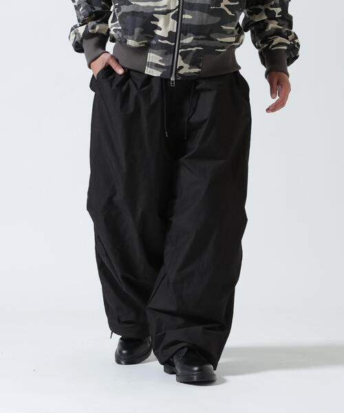 膝部分にタックが入り、立体感あるデザイン。形はバギーで、ワイドシルエットになります。ウエスト部分はゴム入り・ドローコード装備しているので、楽に調整して頂けます。ナイロンコットン(NC)素材の特徴は軽くて丈夫で、ナイロンのしなやかさとコットンのこしが合わさり、立体的なシルエットを演出してくれます。また、着用や洗濯で少しずつアタリやシワが出て、経年変化も楽しめます。FR(13)NDS/フレンズ「恐怖」・「不吉」を連想させる一方で「パワーの象徴」・「もう1つ上の世界」など、様々な感情、表情を持ち合わせた未知の数字。それが(13)である。互いの個性を認め合い、常に新しいものへと進化を続け、高め合える仲間でありたい。そんな思い込めた「FR(13)NDS」。無数の仲間のフィルターを通して見えてくる新しいもの・コトを共感し共有することにより自由に表現し合えるブランド。素材やシルエットへのこだわりと共に、ディティールやプリントなど遊び心も取り入れ、様々な感情や表現を持った服(仲間)。【お買いものをお楽しみいただく為に】▼商品のお気に入り登録完売カラーの再入荷通知や、ラスト1点の通知、セールの通知も受け取ることができます。▼ブランドのお気に入り登録新商品や再入荷など、いち早くブランドのお得な情報を受け取ることができます。
