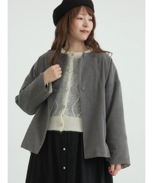 日本の遠州産地で作られたコール天生地にファナージュ加工を施して味を出しました。とても柔らかい風合いが特徴の生地です。敢えてボタンの数を減らして間隔も広くした、 シンプルなジャケットです。 ゆったりとしたシルエットがポイントです。※商品画像は、撮影環境やお客様のご利用のPC・スマートフォンのモニター環境などにより実物と色味に差異がある場合がございます。