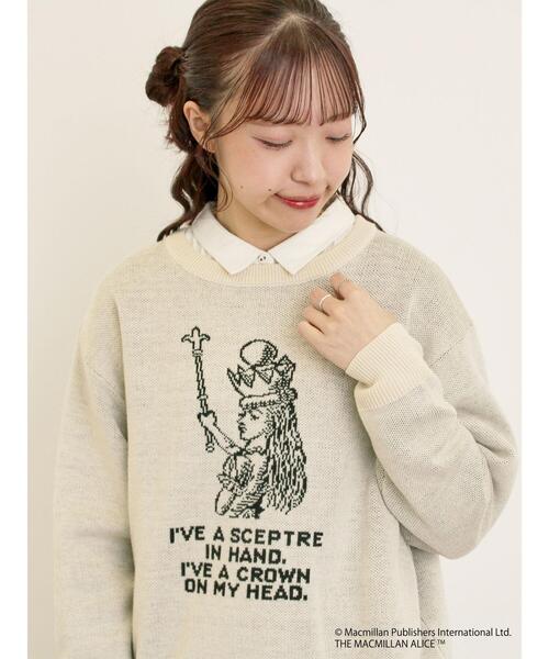 昨年大人気だった「アリス」とのコラボレーション第2弾!今回はルイス・キャロルの『鏡の国のアリス』がモチーフに。ナチュラルだけどピリッとシュールなスパイスを感じさせる、大人のアリスをお楽しみください。 ジャカード織のシックなニット。フロントにチェスの女王になったアリスを描いたインパクト大な1枚です。程よく落ち感のあるシルエットで、こなれた印象を与えます。ベーシックなクルーネックが心地よい着心地を演出。休日のお出かけやタウンユースにも大活躍してくれるアイテムです。 ※商品画像は、撮影環境やお客様のご利用のPC・スマートフォンのモニター環境などにより実物と色味に差異がある場合がございます。★《お気に入り登録》でお得な情報をGET★① 商品ページ内のハートマークをクリック!② 以下通知が受け取れます!「再入荷」「ラスト1点」「特別セール」etc..\ブランド、ショップのお気に入りも是非!/