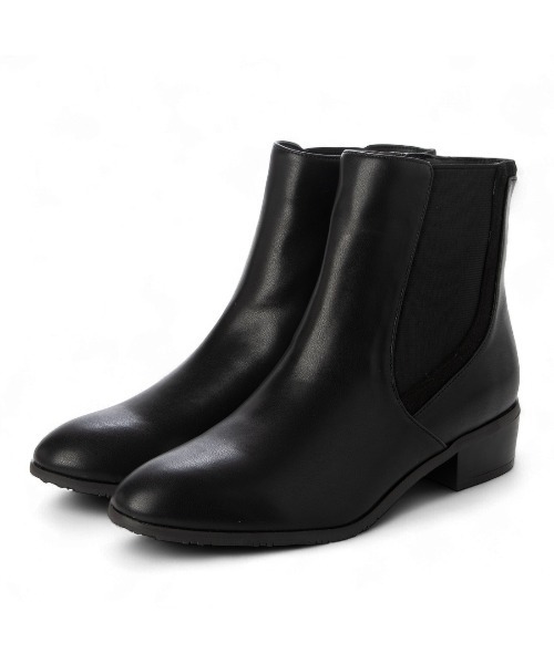 サイドゴアブーツのように異素材を切り替え、コンビ使いにしたブーツ。 スムース素材とウールライクの起毛生地を合わせています。 内側ファスナー付きで着脱しやすさも◎ シンプルなデザインはスタイリングを選ばずにデイリーに活躍します。