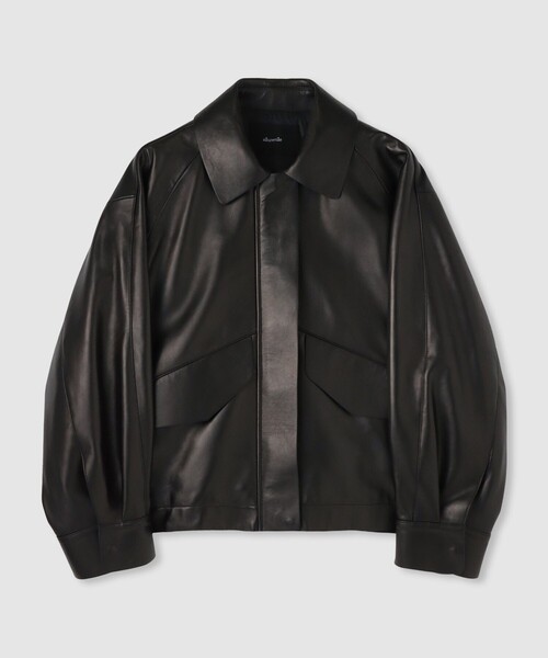 【allureville 2025 autumn&winter】上質なラムレザーを使用した、柔らかくしなやかな着心地のレザーブルゾン。程よいゆとりと丸みのあるフォルムが、今年らしいシルエットを演出します。様々な丈感やシルエットのボトムとバランスが取りやすく、パンツにもスカートにも合わせやすい万能デザイン。羽織るだけでスタイリングを格上げしてくれる一枚です。※照明の関係により、実際よりも色味が違って見える場合がございます。またパソコン・スマートフォンなどの環境により、製品と画像のカラーが異なる場合もございます。予めご了承ください。