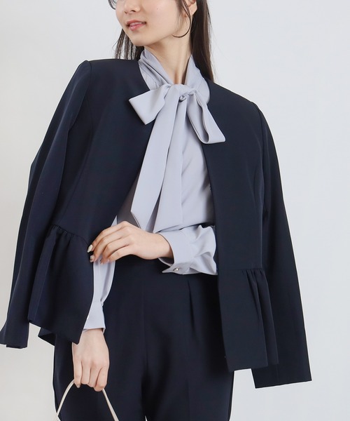 毎日の通勤スタイルを、ほどよく華やかに。 ウエストラインをすっきり見せるペプラムシルエットが、女性らしいメリハリを演出してくれるノーカラージャケット。 ストレッチの効いたきれいめ素材で動きやすく、デスクワークや移動の多い日も快適◎ ノーカラーデザインなので、シャツやブラウス・ハイネックニットなどインナーを選ばず着回し力も抜群です。 ヒップにかかる程よい丈感で、パンツにもスカートにもバランス良くマッチ。 オフィスカジュアルから会議・ミーティングまで、きちんと感をキープしながらも堅苦しくならないのが魅力。 一枚羽織るだけで品よく仕上がる、通勤コーデの頼れる味方です。 シーズンレスに使えるデザインで、春・秋はもちろん冬のインナーアウターとしても活躍。また、卒園式や卒業式、入園式や入学式、結婚式や二次会など、ハレの日のスタイルにも♪ セレモニーやオケージョンなどのONスタイルにおすすめです。 【TRUDEA(トルディア)】by Astoria(アストリア) 毎日着るものだからこそ素材や着心地にこだわりを! 洗練されたデザインに程よいトレンド感をMIXした働く女性のワードロープを提案します。 ベーシックなデザインなので、通勤やオフィスでのお仕事スタイルに◎ ビジネスなどのオンスタイルや、コーディネートするアイテム次第で、きちんと感を出しながら、カジュアルダウンしたスタイルやオフスタイルにも◎ ◆《お気に入り登録》でお得な情報を◆ ・「商品のお気に入り登録」 再入荷、ラスト1点、セール情報などの通知も受け取ることができます。 ・「ブランドのお気に入り登録」 新商品や再入荷など、ブランドのお得な情報を受け取ることができます。