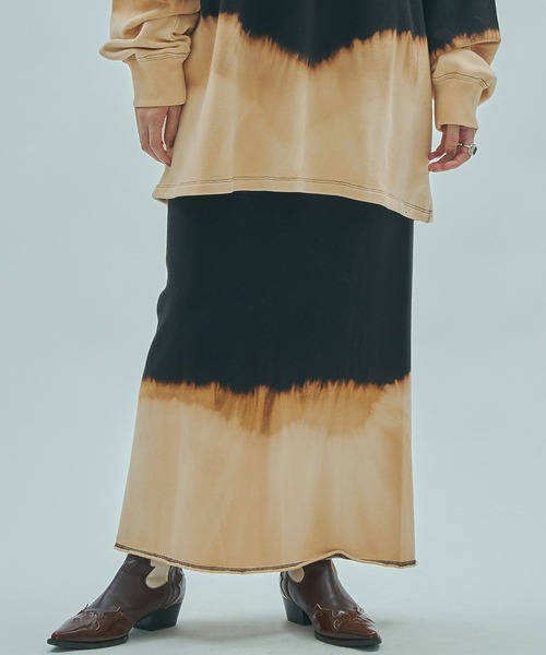 インパクトのある加工が映えるストレートスカート・一点一点職人が施すブリーチ加工で個体差のある仕上がり・すっきりとしたアイラインシルエット・S/Mの2サイズ展開で、スカート丈のみを5cm変更・同素材のブリーチスウェット(品番:205254012002)も展開・ブラック、グレーの2色展開<商品特性透け感 : なし伸縮性 : あり生地の厚さ : 普通裏地 : ありスタッフレビュー職人によるブリーチ加工が一点ずつ異なり、個性のある表情を楽しめるスカートです。タイトなアイラインシルエットながら、深いスリットのおかげで動きやすく、日常使いにも快適です。ウエストは総ゴム仕様でストレスのない穿き心地です。同素材のスウェットと合わせると、統一感のあるスタイリングに仕上がります。mag.by c「自由なスピリットを纏った新時代のヒッピースタイル」装いを通して感じる高揚感、洋服がもたらすポジティブなエネルギー。プレイフルな気持ちで「私の好き」を形にしていきます。鮮やかな色彩・クラフト技術を取り入れた多国籍なカオスさ、そして都会的でモードな一面を共存させたブランドです。お気に入り登録・商品のお気に入り登録再入荷・残り1点・セールの通知を受け取ることができます。・ブランドのお気に入り登録新商品・再入荷/・ショップおすすめトピックスなど、ブランドの情報を受け取ることができます。取扱注意事項・長時間洗濯液に浸けたり汗等で濡れたまま放置しないで下さい。・濃色のものは色落ちするおそれがありますので淡色のものとは分けて洗って下さい。・無蛍光洗剤を使用して下さい。・タンブル乾燥はお避け下さい。・洗濯の際はネットを使用して下さい。・プリント部分は永久的なものではなく、もまれたり擦られたりしますと徐々に薄くなります。・プリント部分へのアイロンはお避け下さい。・アイロンはあて布を使用して下さい。・ほかのものとの引っ掛かりにご注意下さい。モデルの着用画像の場合、光の当たり具合により、実際の色味と異なって見えることがございます。 色味は、商品生地の画像をご参照ください。