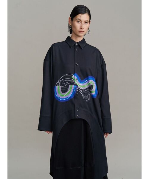今季のシーズンテーマ【地層】をテーマにしたARTシャツ。 時代の積み重ねとサイケデリック且つ未来的なイメージをレイヤードデザインで表現したARTになっています。オーバーサイズのメンズライクなシャツに今季らしいカーブラインをカッティングした印象的なデザイン。とろみのある素材感で着心地も◎同素材でパンツも展開しているのでセットアップでの着用もオススメです。 ※着用画像よりバストが3cm小さくなります。 この商品は【522620700101 STRATUM LAYER PT】とセットアップでご着用いただけます。 ----------------- 透け感:ややあり 生地の厚さ:普通 裏地:なし 伸縮性:なし -----------------▼商品のお気に入り登録 お気に入りアイテムの再入荷・在庫1点などの通知を受け取ることができます。 ▼ブランドのお気に入り登録 新作アイテムの入荷や人気アイテムの再入荷、クーポンなどいち早くブランドのお得な情報を受け取ることができます。