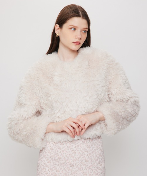 【Design & Fabric】 ふわふわなファーが目を惹くノーカラーエコファーコート。 シンプルなノーカラーデザインと様々なアイテムと合わせやすいショート丈で、幅広いコーディネートに活躍します。 ふんわりとした肌触りと軽い着心地もポイント◎ アイボリーとベージュはトスカーナムートンのようなボリューム感と柔らかな肌触りのエコファー、ピンクはまるでリアルなカシミヤファーのようなふわふわ毛質のエコファーを使用。 淡いカラーとフェミニンなファーの組み合わせがとびきりキャッチーで可愛い1枚。 透け感:なし 裏地:あり 伸縮性:なし 光沢感:なし Model:H177cm B81cm W58cm H89cm