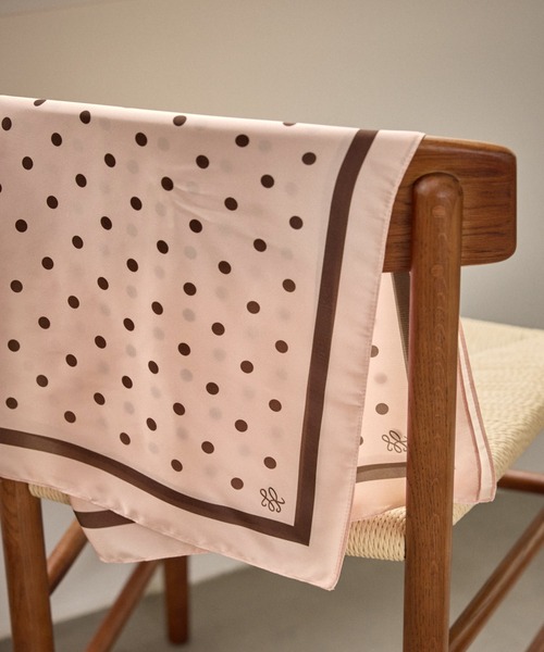 いつものコーデに一枚プラス、大人の品格ドットスカーフ。【素材感】・程よい光沢と滑らかな肌触りの生地感で、カジュアルからきれいめまで幅広いスタイルにマッチ。【デザイン・シルエット】・流行に左右されない定番のドット柄を、落ち着いた配色に落とし込んだスカーフ。・縁をバイカラーで囲み、全体が引き締まりシャープな印象に。・角にさりげなく配置したブランドロゴが高級感をプラス。【カラー】・キナリ、ネイビー、ピンクの3色展開。【スタイリングポイント】・シンプルなニットやブラウス、Tシャツの首元にコンパクトに結ぶだけで、一気に顔周りが明るく華やかな印象に。・ジャケットスタイルに差し込むのもおすすめ。・バッグの持ち手に結びつけて簡単にお洒落なアクセントを。※撮影時の光、お使いのモニター環境によって色の見え方が違う場合がございます。
