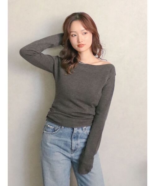 すっきりとしたボートネックがポイントのニット ■デザイン サイドにギャザーを寄せることで、シンプルながらもワンポイントをプラス。 裾はくるんと丸まるラフな仕様で抜け感のあるデザインです。 ■生地感 少しウールを混ぜたハイゲージニットで、あたたかみがありながらも滑らかな質感。 アウターのインにも着やすい軽やかな素材感です。 ■サイズ感 ややフィットするシルエットで、アウターに響かずすっきりと着られるサイズ感。 ■スタイリング ベーシックカラーはもちろん、映えるレッドを主役にした着こなしもおすすめ。 ハイウエストのデニムと好相性。 ・・・・・・・・・・・・・・・・・・・・・・ 透け感:なし 裏地:なし 伸縮性:あり 光沢感:なし 生地の厚さ:普通 ・・・・・・・・・・・・・・・・・・・・・・ ※商品画像はサンプルのため、色味やサイズ、素材の混率等の仕様に 変更がある場合がございます。予めご了承ください。 ※生地寄り画像を正規の商品の色味に近づけております。 ■商品のお気に入り登録 再入荷通知やラスト1点、お得なプライスダウンの情報も受け取ることができます。 ぜひご登録ください◎