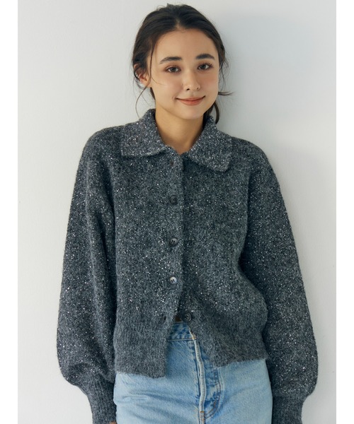 スパンコールがきらびやかで冬らしい印象のポロカーディガン ■デザイン ボタンをあえて下まで付けず、少し開く仕様にすることで抜け感をプラス。 トップス感覚で着られるデザインです。 ■生地感 起毛感のある糸を使用し、内側にはスパンコールを付けていないため肌あたりが良く、快適な着心地。 ■サイズ感 ルーズなサイズ感で、たぽっとしたリラックスシルエット。 ■スタイリング カジュアルにルーズデニムを合わせたスタイリングがおすすめ。 ・・・・・・・・・・・・・・・・・・・・・・ 透け感:なし 裏地:なし 伸縮性:なし 光沢感:なし 生地の厚さ:普通 ・・・・・・・・・・・・・・・・・・・・・・ ※商品画像はサンプルのため、色味やサイズ、素材の混率等の仕様に 変更がある場合がございます。予めご了承ください。 ※生地寄り画像を正規の商品の色味に近づけております。 ■商品のお気に入り登録 再入荷通知やラスト1点、お得なプライスダウンの情報も受け取ることができます。 ぜひご登録ください◎