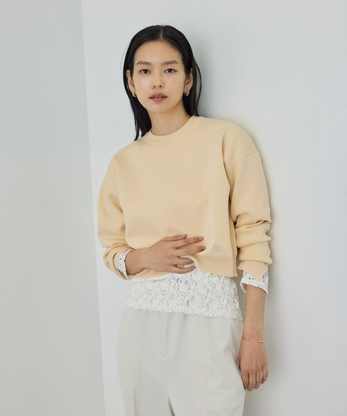 【デザイン・シルエット】 身幅と袖にほどよいゆとりを持たせてリラックス感を選出しながらも、着丈をコンパクトにすることで、スカートにもパンツにも合うデザインに仕上げました。左裾にあるロゴ刺繍もポイント。シンプルなシルエットの中に、大人のこなれ感と上品さを感じさせます。 【おすすめのスタイリング】 ストレートシルエットのスカートやパンツともにバランスよく合わせられるサイズに仕上げています。袖口のスリットから、カットソー・シャツやレースなどを出してレイヤードスタイルを取り入れると、スタイリングが新鮮になり飽きずに長くご愛用いただけます。 【素材】 毛羽立ちが少ないガスシルケットのかかったコットンとポリエステル糸をスムースで編まれています。発色が良いのがポイントです。 ---------------------------- 透け感:なし 裏地:なし 伸縮性:あり 光沢感:なし 生地の厚さ:中肉 ポケット:なし 開き方:かぶり 洗濯:手洗い可能 ---------------------------- 【モデル情報】 モデル身長:約175cm 着用サイズ:F ※画像の商品はサンプルです。実際の商品と仕様、加工、サイズが異なる場合がございます。 ※撮影場所やライティング、お使いのモニター環境によって色の見え方が異なる場合がございます。 ※商品のカラーは画像の色味をご参照ください。動画は仕様説明のため、色味が実物と異なる場合がございます。