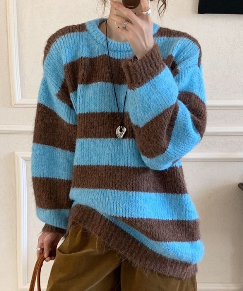 -おすすめポイント♪- ぱっと目を引く太ボーダーで着るだけでこなれ感が出る、ゆるっと可愛いオーバーサイズニットが登場♡ たっぷり身幅とドロップショルダーのリラックスシルエットに、ざっくりとしたリブの袖口・裾がバランスよく効いているので だぼっと着てもだらしなく見えず、程よい抜け感を演出してくれます。 ふんわり起毛して肌触りがやわらかく暖かさも抜群、見た目の柔らかさがそのまま冬のムードを高めてくれます。 グレートーンの落ち着いた配色なのでアクセサリーやバッグと合わせやすく、 ワイドな白パンツでクリーンにまとめるのはもちろん、ミニスカート+ブーツでガーリーに、デニムでラフに崩すのもおすすめです◎ どんなボトムとも相性が良く、重ね着やレイヤードの幅も広い一枚で、この冬のデイリーの定番にしたくなるニットです♡ -お買い物をお楽しみいただくために- ◆Instagram◆ lacvert_official 新作情報やルックを配信中 ◆この商品が気になったらお気に入り登録 完売カラーの再入荷通知やセール情報、ラス1情報などの通知を受け取ることができます♪ ◆LAC VERTをお気に入りブランドに登録 新商品や入荷情報を受け取ることができるので、いち早く新作をチェックできます!是非ご登録してくださいね♪ ※撮影時のライティング、ご覧になっているモニター・PC環境により、実際の商品と色味が異なって見える場合がございます。予めご了承をお願い致します。 韓国 韓国ファッション 韓国風 韓国アクセサリー セットアクセ アクセサリー きれいめ シンプル 大人 オフィス 結婚式 二次会 オフィスカジュアル 秋 冬 韓国通販 かわいい 可愛い おしゃれ オシャレ プチプラ トレンド ストリート 量産型 通勤 通学 ペアルック プチプラ 大人かわいい ワントーン ニュアンス 秋服 冬服