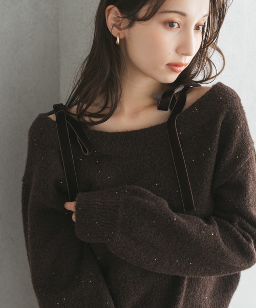 ◆◇◆2025 Autumn & Winter Collection◇◆◇ショルダーにあしらわれたベロアのリボンがアクセントになるニット。キラキラのスパンコールが散りばめられた華やかなデザインです。リボンは取り外しできるので、気分やシーンに合わせた着こなしを楽しむことができます。■fabric透け感[無し]裏地[無し]伸縮性[有り]生地の厚さ[普通]★《お気に入り登録》でお得な情報をGET★・「商品のお気に入り登録」で再入荷通知やラスト1の通知、セールやクーポンの通知も受け取ることができます!→ハートマークをクリック・「ブランドのお気に入り登録」で新商品や再入荷など、お得な情報を受け取ることができます!〇検索用タグ〇かわいい ガーリー ふわふわ リボン 取り外し可能 2way キラキラ ラメ カラフル 推し活 参戦服 おでかけ デート オフショル 肌見せ ベロア 暖かい ゆったり 大人かわいい フェミニン シンプル 無地 モテコーデ 上品 甘め 双子コーデ 写真映え 華奢見え 体系カバー トレンド 冬コーデ フレンチガーリー あざとかわいい 量産型