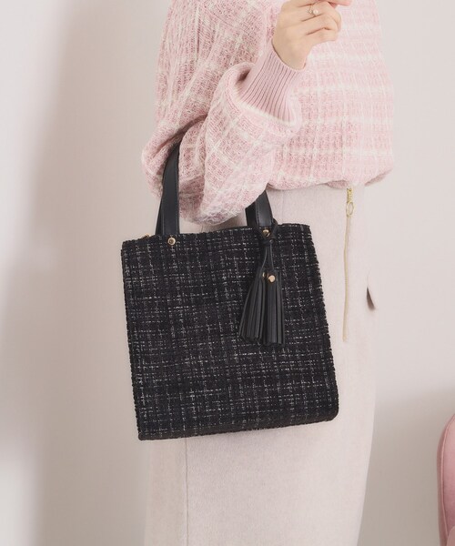 【デザイン】 モール調のツイードで上品な印象のタッセル付きミニトートが登場。 地厚で型崩れしにくく、しっかり自立してくれるので、キレイめコーデに合わせて華やかな雰囲気が出せる高見えアイテムです。 ファスナー付きのあおりポケットで収納力も◎ 【機能性】 着脱可能なタッセル付き。 中身も安心の天マグ仕様。 ※ポケット数×4 ※照明の関係により、実際よりも色味が違って見える場合があります。また、パソコン・スマートフォンなどの環境により、若干製品と画像のカラーが異なる場合もございます。 ---------------------------------------- ★お気に入り登録がおすすめ★ ▽気になる商品はハートマークをクリック! ・再入荷やセールの通知をお知らせ ・お気に入り一覧からいつでもチェック ▽ブランドのお気に入り登録も! ・新商品やお得な情報をいち早くお知らせ ---------------------------------------- 店舗へのお問い合わせ商品番号:P93-74072 ●製品寸法: 00(フリーサイズ):高さ22cm 幅(上部)22cm 幅(下部)23cm マチ13cm 持ち手上がり12cm 付属チャーム全長16cm モチーフH9cm モチーフW3cm 備考:重量:約325g