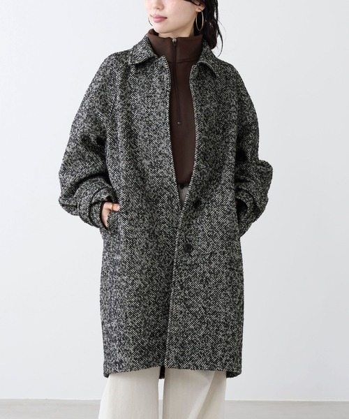 シルエットにこだわったステンカラコート。クラシックな印象の生地を、立体的なシルエットに落とし込み、今っぽくモダンに仕上げました。丸みのある立体的な袖やコクーンシルエット・衿のつまり具合など、古着っぽくならず上品に見えるバランスやパターンにこだわりました。チンフラップ付きなので、スタンドカラーとしても楽しめます。裏見返しの裾側にチンフラップを収納できるボタンが付いています。旬なスタイリングが叶うコートです。【fabric】- OATMEAL/BROWN -独特なトップのような見え方が魅力のリサイクルウール素材を使用しています。- WHITE×BLACK -ループ糸などを使用し、上品な表情感のあるヘリンボーン素材を使用しています。--------------------------------------透け感:なし裏地:あり伸縮性:なし光沢感:なし生地の厚さ:普通ポケット:あり--------------------------------------ドライクリーニング*詳しくは商品の洗濯表示にてご確認をお願い致します。【coordinate】アームホールにゆとりがあり、厚みのあるスウェットやニットなども中に着こめます。クラシックな雰囲気があるので、きちんとコーデにもぴったり。フードパーカーを合わせたメンズライクな着こなしもおすすめ。【staff comment】《スタッフ:157cm》着用サイズ:FREE/普段サイズ:FREE/S~M上質なウールならではのしっかりとした重みがありますが、落ち感がきれいなので着たときのラインがとても上品見えます!シンプルに羽織るだけで雰囲気が出て、幅広いコーデに馴染んでくれるアイテムです。*商品画像はできる限り実物の色に近づけるよう徹底しておりますが、お使いのデバイスのモニター設定、お部屋の照明等の閲覧環境により実際の色味と異なって見える場合がございます。*画像の商品はサンプルです。実際の商品と仕様、加工が若干異なる場合があります。予めご了承くださいませ。▼商品のお気に入り登録お気に入りアイテムの値下げ・再入荷・在庫1点などの通知を受け取ることができます。 ▼ブランドのお気に入り登録新商品や再入荷、クーポン配布などのお得な情報を受け取ることができます。