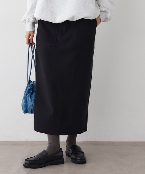【デザインポイント】 裏起毛素材を使ったIラインスカート。 ストレッチ素材とウエストゴムの組み合わせで、ウエスト部分にギャザーを寄せずに楽に穿ける仕様になっています。 これにより、ギャザーによるもたつきやふくらみが出にくく、ウエストまわりがすっきり見えやすいのが特徴です。 【スタイリングポイント】 シンプルなデザインなので、きれいめのTシャツやブラウスからカジュアルなニットやスウェットまで合わせやすく、幅広いコーディネートに馴染みやすい1枚。 靴やトップスで雰囲気を変えやすく、普段使いからちょっとしたお出かけまで役に立ちます。 【素材ポイント】 裏起毛素材のストレッチ素材。 伸縮性もあり肌触りもよく温かい素材です。 【仕様】 ・ポケット数:横×2 ・ウエスト総ゴム ・裏地なし ※照明の関係により、実際よりも色味が違って見える場合があります。また、パソコン・スマートフォンなどの環境により、若干製品と画像のカラーが異なる場合もございます。 モデル情報:身長166cm B72 W62 H86 着用サイズ:02(M) 店舗へのお問い合わせ商品番号:F58-74031 ●製品寸法: 01(S):W66cm H88cm 総丈82cm 02(M):W70cm H91cm 総丈83cm 03(L):W74cm H94cm 総丈84cm 備考: