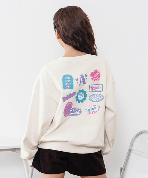 algy(アルジー)のトレーナー「裏起毛バックワッペントレーナー」。コーデが決まる!これを持っておけば間違いなしのトップスです◎XXS・・・125~135cmXS・・・135~145cmS・・・145~155cmM・・・155~165cm【 algy ーアルジー ー 】『おしゃれを楽しみたいティーンズのリアルクローズ』着たい 欲しい トレンド・・・全部そろう小中学生向けブランドです。【取り扱い表示】40℃を上限に洗濯機で洗濯、デリケートアイテムモード、ネット使用、漂白剤を使用禁止、色物は同系の色と一緒に、洗濯後直ちに取出し、タンブル乾燥不可、日陰で吊り干し、低温でアイロン、商業ドライクリーニング不可【ご注意事項】この商品のプリント部分は洗濯を繰り返すことにより、起毛・光沢が徐々に消失、ひび割れ、脱落することがあります。出来るだけ美しくご利用頂くために次のことにご留意下さい。○ 洗濯、保管の際、プリント面同士が重ならない様にご注意下さい。○ プリント部分のもみ洗いやタンブル乾燥機の使用はお避け下さい。○ 洗濯後、すみやかに広げて下さい。○ 脱水は弱く、形を整えてから干して下さい。○ プリント部分にアイロンを当てないで下さい。※商品により多少の誤差が生じる事がございます。あらかじめご了承下さい。※ご使用のパソコンやブラウザの環境により、実際の色とは多少異なる場合がございます。※モデル着用写真についてはイメージの為、実際の商品とカラーや仕様が異なる場合がございますので、商品画像をご覧ください。▼気になる商品をお気に入り登録ハートマークをクリックして『お気に入り登録』がオススメです!商品のお気に入り登録をすると、[再入荷][残り1点][セール情報]を受け取れます。また、『F.O.Online Store』を、お気に入り登録すると[新作アイテム][再入荷]の情報をいち早く受け取れます♪