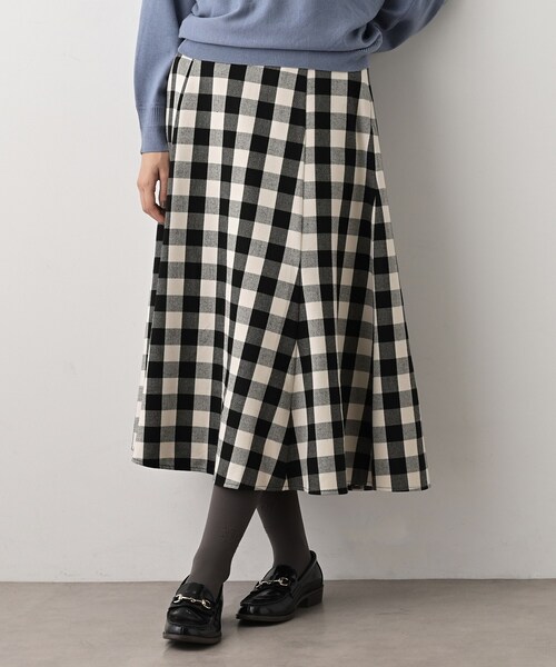 【デザインポイント】オリジナルのチェック柄を使用したフレアスカートです。全体的なフレアに加えて裾に向かって少しボリュームが出るようなデザインで、きれいなシルエットが定評です。【スタイリングポイント】ニットやカジュアルなスウェットにも合わせやすいスカートです。暗くなりがちな冬のスタイリングにプラスして華やかな印象に。【素材ポイント】Dessinオリジナルのチェック柄で、表面に起毛が入っており暖かみのある着心地のよい素材感です。【仕様】・ポケットなし・左脇ファスナー・ウエスト後ろゴム・裏地あり※照明の関係により、実際よりも色味が違って見える場合があります。また、パソコン・スマートフォンなどの環境により、若干製品と画像のカラーが異なる場合もございます。モデル情報:身長166cm B72 W62 H86 着用サイズ:02(M)店舗へのお問い合わせ商品番号:F58-74030●製品寸法:00(XS):W60~64cm H92cm 総丈79cm01(S):W63~67cm H94cm 総丈81cm02(M):W65~69cm H95cm 総丈82cm03(L):W68~72cm H96cm 総丈83cm備考: