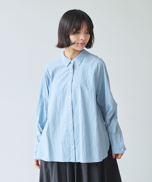 ふんわりとやわらかな手触りが心地よいコットンシルクローン。 シルク混にすることで、上品な光沢感が生まれます。 きちんと感がありつつ肩の力が抜けるのようなラグランのシャツは、まるみを帯びた袖のかたちにこだわりました。 春は1枚で、暖かくなってきたら羽織としても◎ オールシーズン活躍してくれるブラウスです。 ============================ 透け感:あり 裏地:なし 伸縮性:なし 光沢感:あり ============================ ※素材の特性、お取り扱いの注意 水洗い可・・・中性洗剤使用 アイロン可・・・あて布使用 ・この製品はシルク素材を使用しています。シルク糸の特性上フシが多く糸の太さが均一でない為、織ムラ等の生じてる事がありますが、天然素材の素朴な味わいを生かしたものです。 bulle de savon(ビュルデサボン) BRAND CONCEPT 女性、誰もが ふっと子供の頃を思い出し 少女のような気持ちに戻れる服。 bulle de savon =シャボン玉の事 石鹸の泡とか、 においなど、 懐かしい感じ。 設立年月日 1994年8月 ※アイボリー、サックスブルーはサンプルです。実際の商品と仕様・加工・サイズ等が若干異なる場合がございます。 ※モデルの着用画像は光の関係で商品の色味が若干異なります。 ※取り扱いの注意については取り扱い表示をよくご確認の上、着用をお願いいたします。 ※工場の生産の都合上、入荷の時期が前後する場合がございます。ご了承ください。