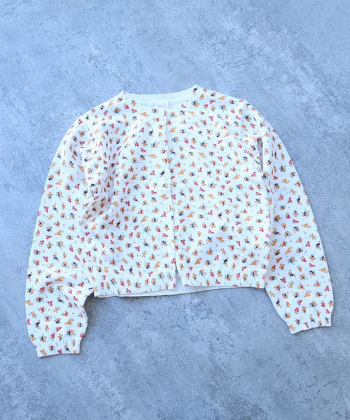 ビュルデサボンの過去の資料から、目を惹かれたむかしの小花柄をアレンジしてニットにプリントしました。はるに向けて気分が上がるような、ぱきっとした色味の配色がこだわりです。============================透け感:なし裏地:なし伸縮性:あり光沢感:なし============================※素材の特性、お取り扱いの注意水洗い可・・・中性洗剤使用アイロン可・・・あて布使用・この製品に使用しておりますプリント部分への、アイロンはおさけ下さい。またプリントは、洗濯、摩擦により多少変色や、色落ちする場合がありますのであらかじめ御了承下さい。・この製品は、洗濯の際、多少の縮みがあります。bulle de savon(ビュルデサボン)BRAND CONCEPT女性、誰もが ふっと子供の頃を思い出し 少女のような気持ちに戻れる服。 bulle de savon =シャボン玉の事 石鹸の泡とか、においなど、 懐かしい感じ。設立年月日 1994年8月※アイボリーはサンプルです。実際の商品と仕様・加工・サイズ等が若干異なる場合がございます。※モデルの着用画像は光の関係で商品の色味が若干異なります。※取り扱いの注意については取り扱い表示をよくご確認の上、着用をお願いいたします。※工場の生産の都合上、入荷の時期が前後する場合がございます。ご了承ください。