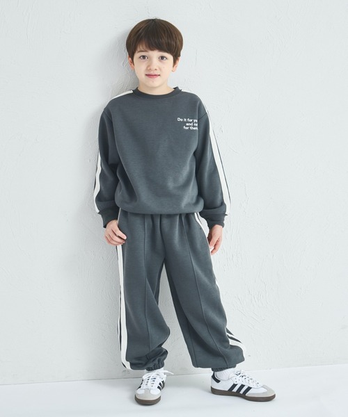 配色感がおしゃれな、スウェット×パンツの裏起毛セットアップが登場! パンツのウエストは総ゴム使用で、お着替えも楽ちんです◎ 裾がゴムなのも嬉しいポイント! ゆるっと可愛いシルエットが叶います。 スウェットの胸元にはワンポイント刺繍入り! トップスにもパンツにもサイドラインが入っているので、セットで可愛いのはもちろん、別々で使っても存在感のあるアイテムです。 【ポケット】 あり(フロント片サイド) 【伸縮性】 あり 【透け感】 透けない 【クリーニング】 洗濯機洗い可(ネット使用) 【裏地】 なし モニター・環境等により実際の商品と色味が多少異なって表示される場合がございます。 また、生産時期により色味が若干異なる場合がございます。予めご了承ください。 素材の特性上、毛羽立ちが生じやすい製品となっております。 【濃色品・色落ち色移り】 濃色品は、色落ち・色移りをする恐れがあります。摩擦(特に湿った状態での摩擦)や汗や雨などで他の衣料や下着(特に白物)に色移りしますので、十分ご注意ください。