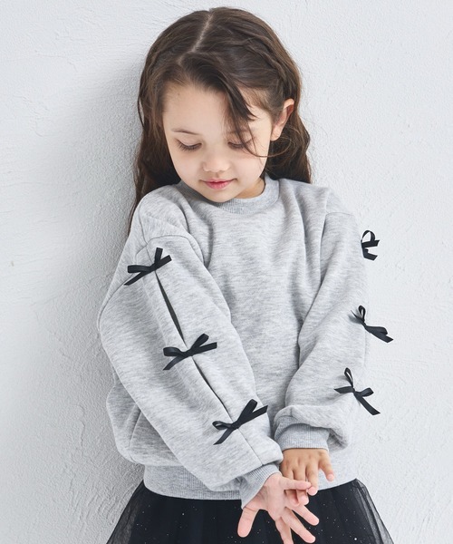 可愛いリボンが6つも付いた、可愛い裏起毛スウェット。 全体は無地でシンプルなので、どんなボトムスとも合わせやすい1枚です。 リボンは左右の袖に3つずつ付いていて、カラーによってリボンの色が違うのもポイント! 秋冬感溢れるこっくりカラーのイエロー・ボルドーと、使いやすいグレーの3色展開。 お出かけにはもちろん、毎日の通園・通学にもおすすめです。 【ポケット】 なし 【伸縮性】 あり 【透け感】 透けない 【クリーニング】 洗濯機洗い可(ネット使用) 【裏地】 なし モニター・環境等により実際の商品と色味が多少異なって表示される場合がございます。 また、生産時期により色味が若干異なる場合がございます。予めご了承ください。 素材の特性上、毛羽立ちが生じやすい製品となっております。 【濃色品・色落ち色移り】 濃色品は、色落ち・色移りをする恐れがあります。摩擦(特に湿った状態での摩擦)や汗や雨などで他の衣料や下着(特に白物)に色移りしますので、十分ご注意ください。