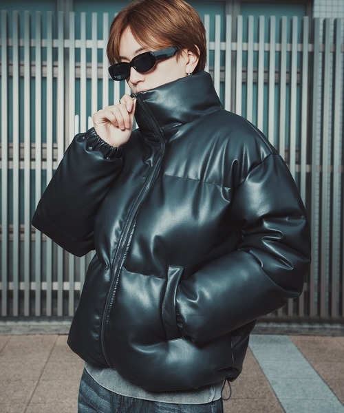 トレンドの素材感とボリュームシルエットを組み合わせた、パデッドブルゾン。●レザーのようなリアルなシボ感が魅力の合成皮革●暖かい中綿をしっかりと詰めることで、真冬でも対応できる高い防寒性●トレンド感のあるオーバーサイズ・ボリュームシルエットを実現●首元はしっかりと立ち上がるハイネックデザインで、風の侵入を防ぎます●袖口はリブ仕様で、保温性を高めていますトレンド感のあるシルエットが今どきの中綿ダウンジャケットです。袖口のリブ仕様、裾部分のドローコードを調整することで丸みのあるシルエットが完成。シンプルなデザインでストリートはもちろん、大人カジュアルにもぴったり。ハードな素材感でロックやモード、韓国ファッションもおすすめです。男性はもちろん、女性にも着ていただきたいユニセックスデザイン。
